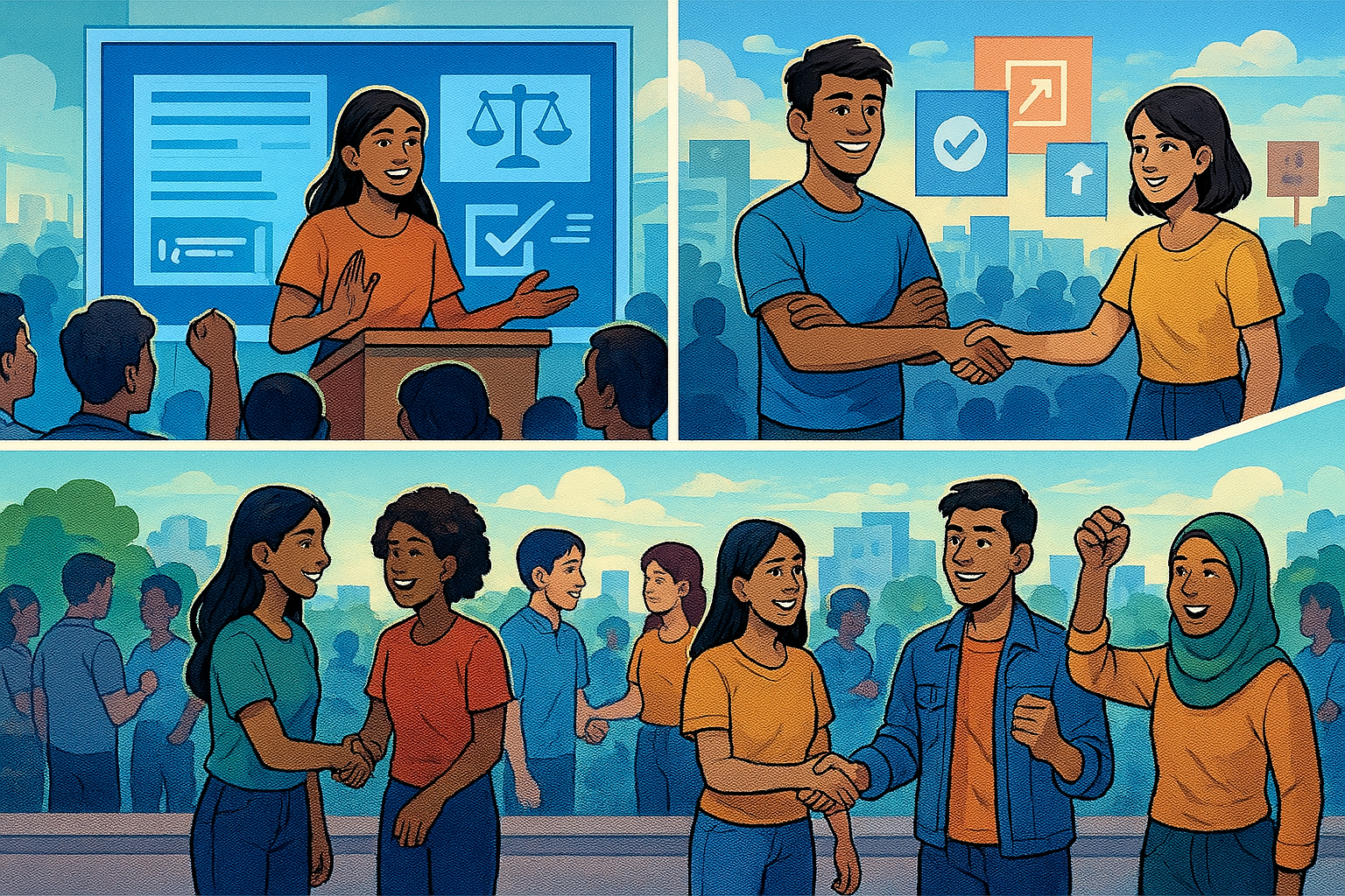 YOUTH EMERGE is a grassroots initiative dedicated to empowering young individuals from all walks of life to participate in politics and governance actively. Inspired by the spirit of inclusivity and empowerment, YOUTH EMERGE seeks to amplify the voices of marginalized youth and ensure their meaningful representation in political discourse.